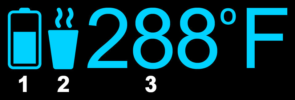 4) Hard-press the trigger for 4 seconds. The device will vibrate and you will see the oven icon blink. This means that the device is working it's way up to the selected temperature. The icon will stop blinking/stay solid and device will vibrate again once the desired temperature is reached. At this point, the device is now ready to be used